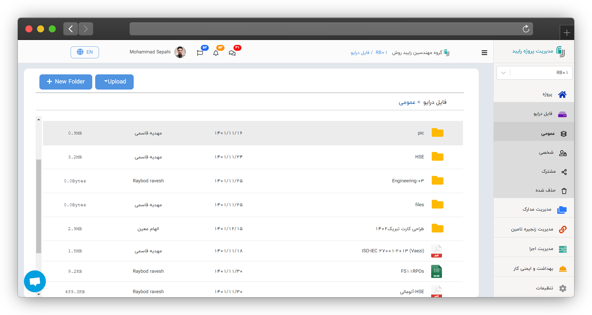 فضایی برای ذخیره سازی، دسته بندی و اشتراک گذاری فایل و فولدر ها میان اعضای پروژه